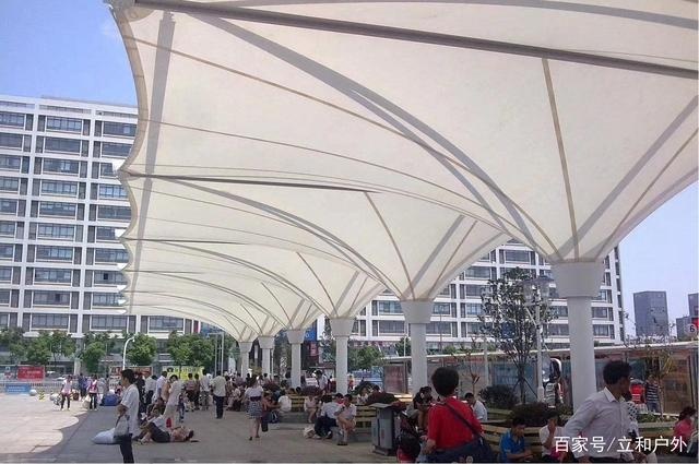 膜結(jié)構(gòu)遮陽雨棚因其強度高、耐久性好、防火難燃、自潔性好、使用壽命長等特點,在城市建設(shè)中頗受歡迎。在熱鬧的廣場上、在人來人往的公園里、在靜謐的小區(qū)里……我們都可以看到膜結(jié)構(gòu)遮陽雨棚的身影。雖然我們平時都沒特別關(guān)注過它,但在生活中,我們或多或少都與它有過接觸:天氣炎熱的時候,我們在膜結(jié)構(gòu)遮陽雨棚下面納涼休息;下雨的時候,我們也躲在它的港灣里,期盼大雨早點過去。長此以往,可以說膜結(jié)構(gòu)遮陽雨棚已經(jīng)成為城市里不可缺少的一部分了。